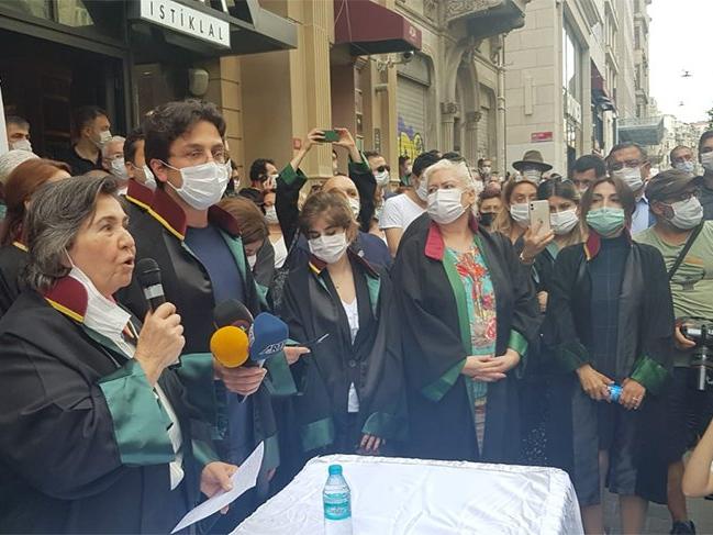 İstanbul Barosu Taksim'deki binasının önünde toplandı. Ankara’ya yürüyüşü engellenen baro başkanlarına destek olmak amacıyla bina önünde oluşan büyük kalabalık “Savunma susmadı, susmayacak”, “Ya hep beraber ya hiçbirimiz, kurtuluş yok tek başına”, “Hak, hukuk, adalet” sloganları ve alkışlarla protesto etti.