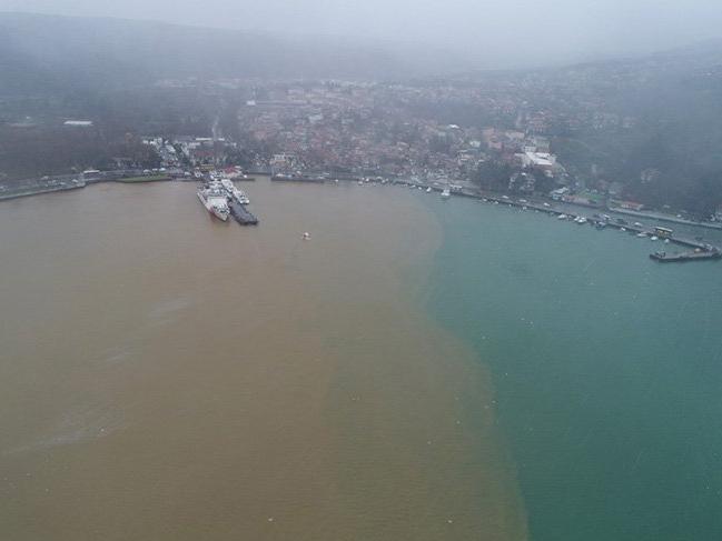 Çamurlu sel sularının aktığı İstanbul Boğazı'nın rengi Sarıyer kıyılarında kahverengiye döndü.
