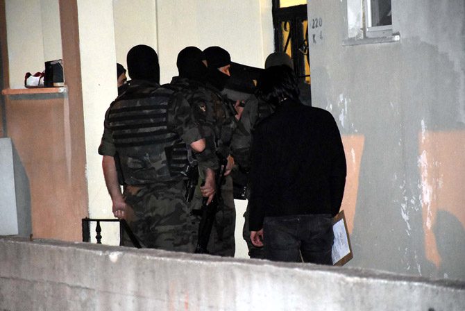 Hürriyet Mahallesi Dolapçılar Sokak'taki bir evin de aralarında bulunduğu adreslere düzenlenen operasyonda, akrep tabir edilen zırhlı araç ve çelik yelekli sivil polisler güvenlik önlemi aldı. Saat 05.30 sıralarında Özel Harekat polislerinin desteği ile eve giren polislerin söz konusu adreslerdeki araması sürüyor. (DHA)