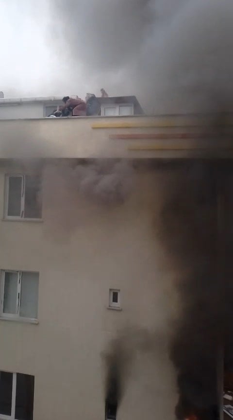 İhbar üzerine olay yerine çok sayıda itfaiye, polis ve sağlık ekibi sevk edildi. Polis ekipleri sokağı trafiğe kapatarak güvenlik şeridi oluştururken, itfaiye ekipleri bir yandan yangına müdahale etti, diğer yandan merdiven aracıyla çatıya ulaştı. Çatıda mahsur kalan 8’i çocuk toplam 12 kişi, ekiplerce güvenli bir şekilde aşağı indirilerek sağlık görevlilerine teslim edildi.