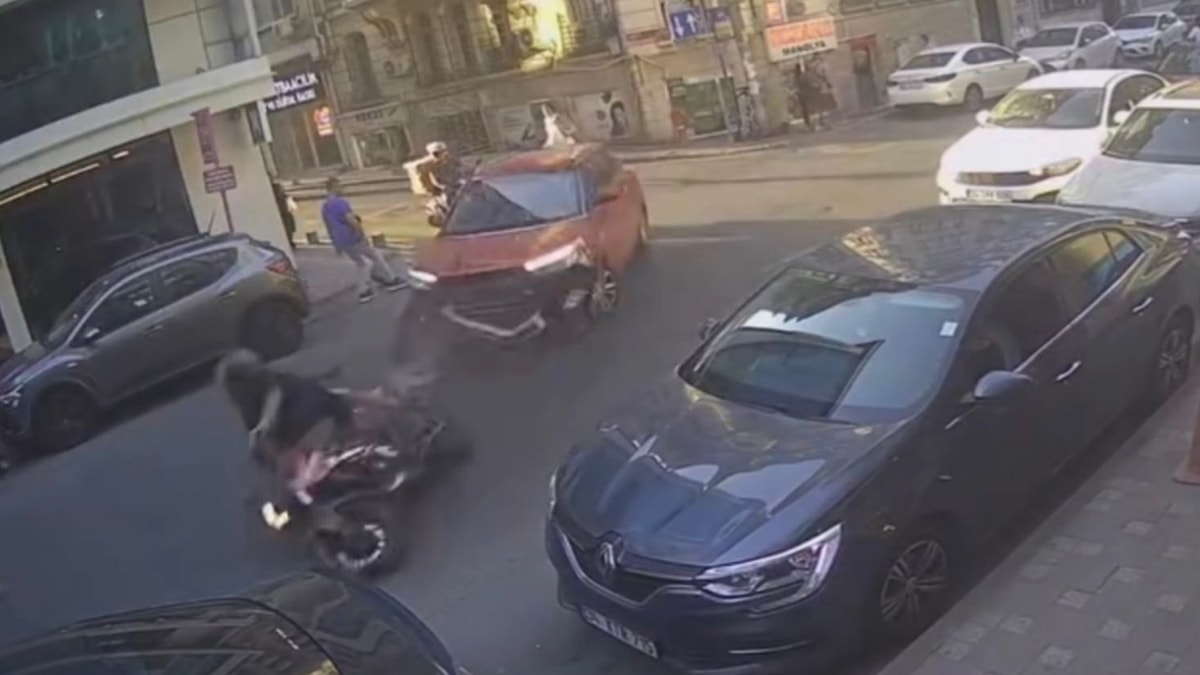İstanbul'un Şişli ilçesinde ara sokaktan çıkan otomobil, caddede seyir halindeki motosiklete çarptı. Kazada motosiklet sürücüsü yaralandı.