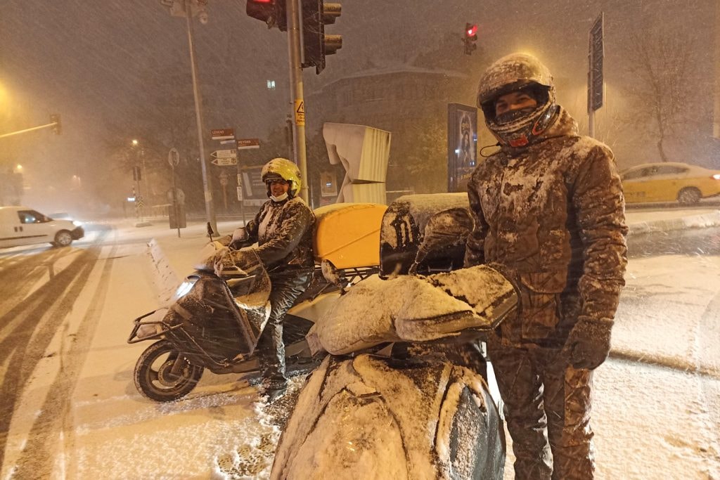Yoğun kar yağışı nedeniyle İstanbul’da eğitim-öğretime ara verildi, motosiklet ve kuryelerin trafiğe çıkışı yasaklandı.