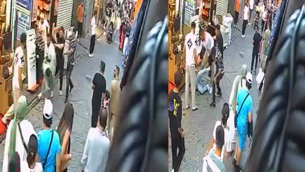 İstanbul'un Fatih ilçesinde 3 kişi, sopa ve tekmeyle 1 kişiye saldırdı. Yaşanan saldırı anlar, güvenlik kamerası tarafından kaydedildi.