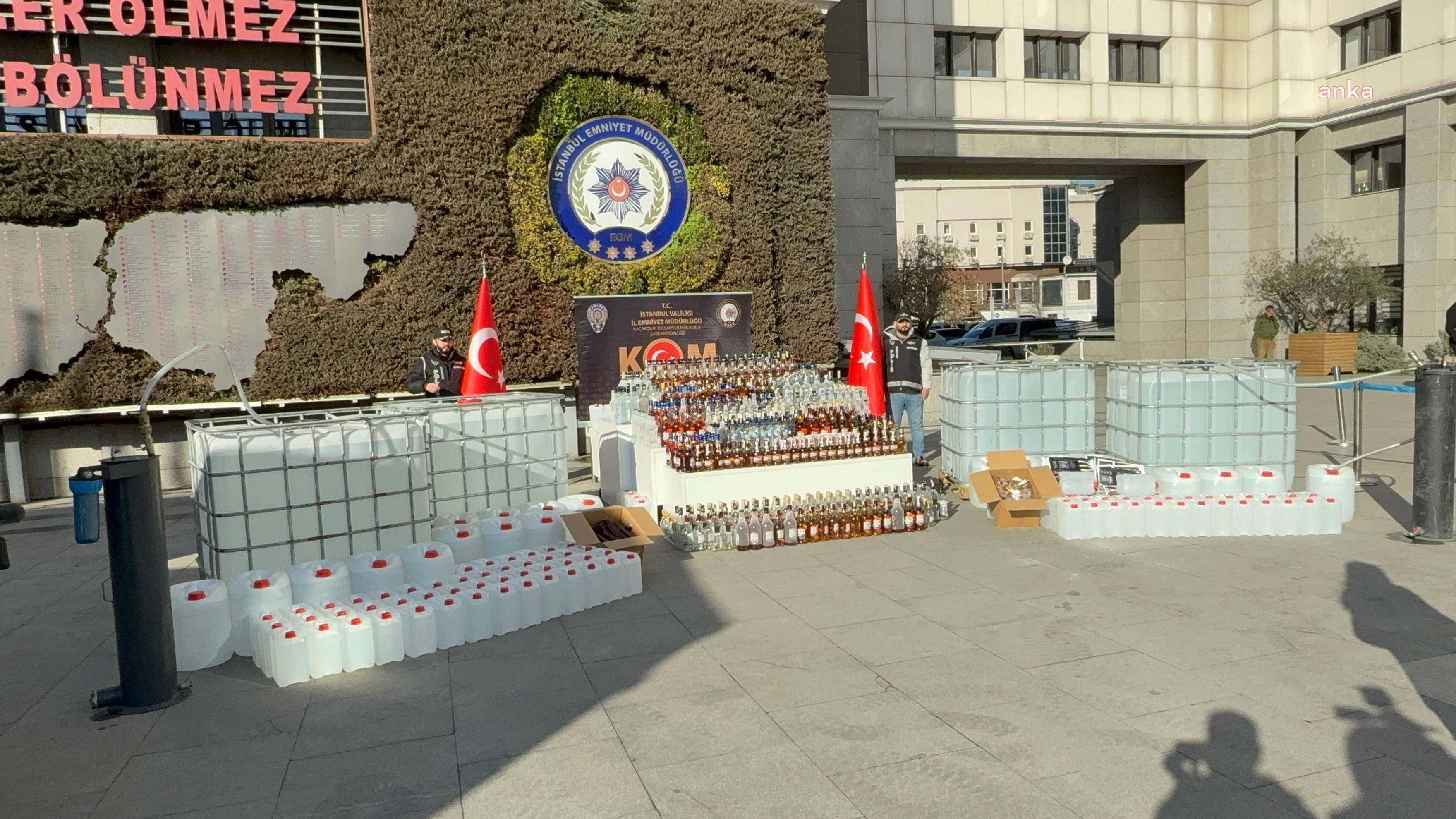 Ele geçirilen sahte içkiler, İstanbul Emniyet Müdürlüğü’nün Vatan Yerleşkesi'nde sergilendi.