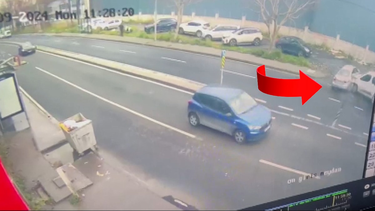 Kaza anı bölgedeki bir iş yerinin güvenlik kamerası tarafından kaydedildi. Görüntülerde, sola dönüş yapan otomobile karşı yönden gelen hafif ticari aracın çarpması ve iki aracın savrularak park halindeki otomobile çarptığı anlar yer alıyor.