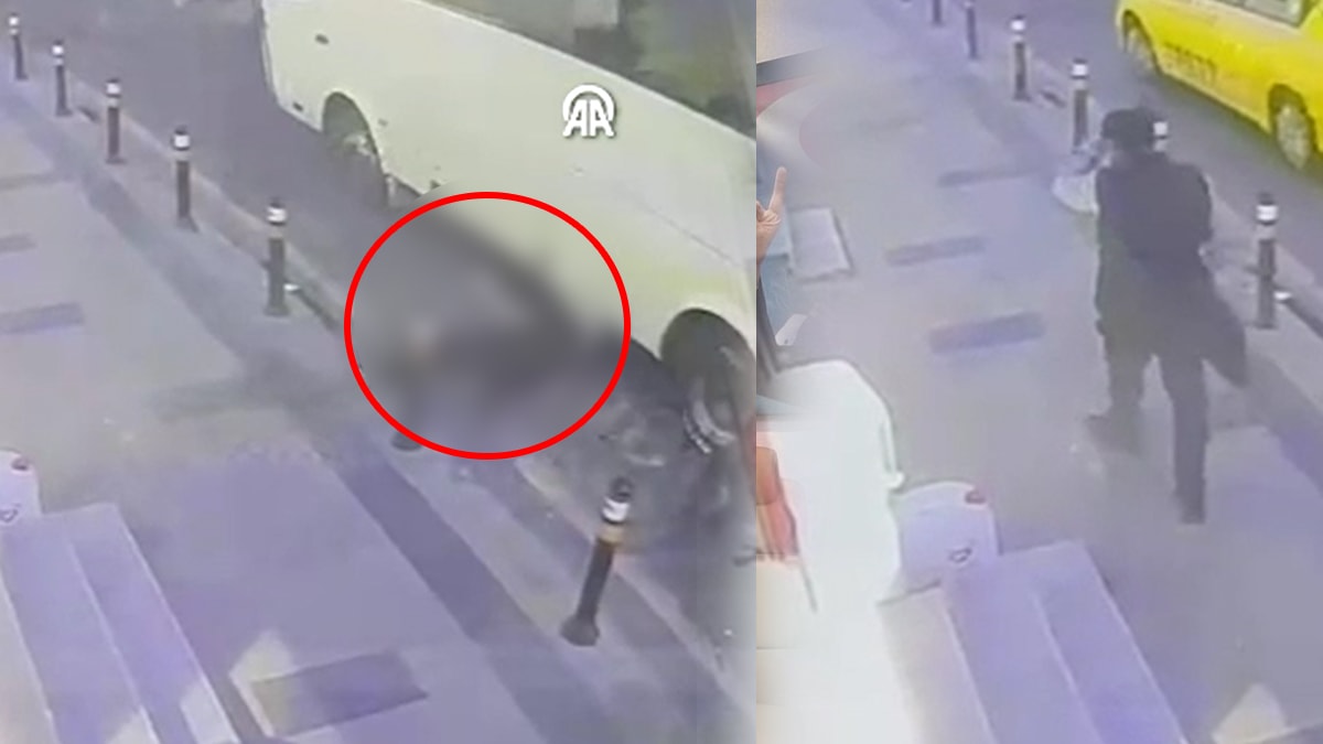 Yaşanan kaza çevredeki bir iş yerinin güvenlik kamerasınca kaydedildi. Görüntülerde, kaldırımda yürüyen kişinin, fenalaşarak dengesini kaybedip yola düştüğü anda üzerinden servis aracının geçmesi yer alıyor.