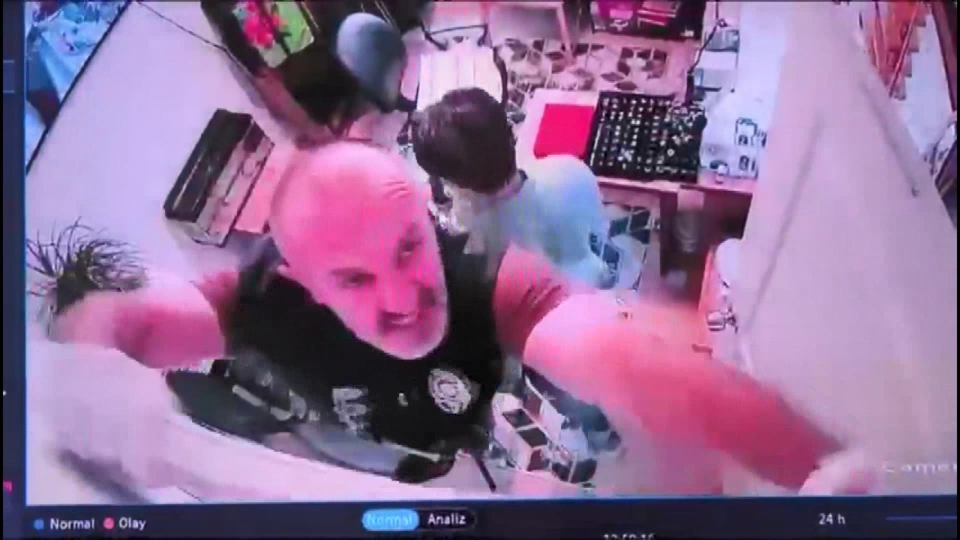 Şüpheliler daha sonra takıların bulunduğu odaya girerek yaklaşık 150 bin dolar değerindeki takıları çantaya doldurduktan sonra içlerinden bir tanesi güvenlik kameralarını fark edip kameraları kırmaya çalıştı.