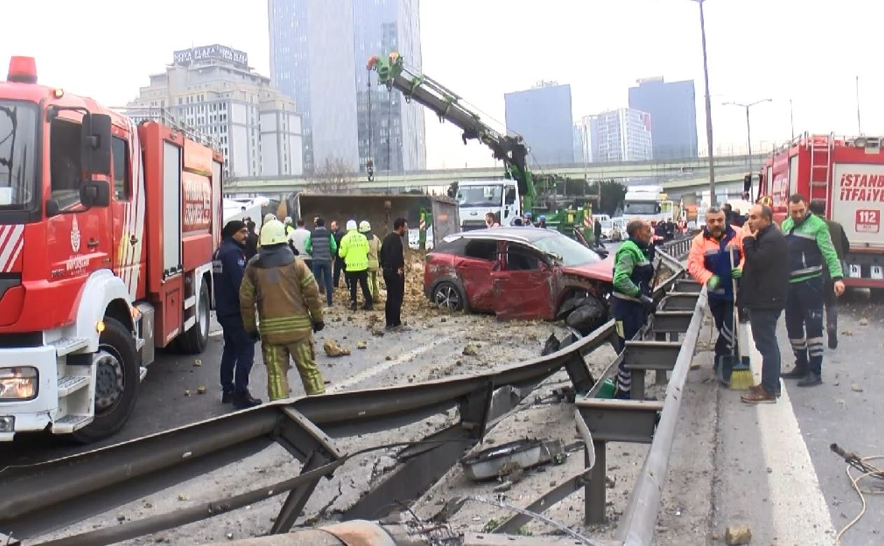 İstanbul'da gerçekleşen kaza saat 09.00 sıralarında Basın Ekspres Yolu Başakşehir istikametinde meydana geldi. Edinilen bilgiye göre hafriyat yüklü 34 AJ 6691 plakalı kamyon şoförünün direksiyon hakimiyetini kaybetmesi sonucu seyir halindeki 34 CMR 688 plakalı otomobile çarparak devrildi.