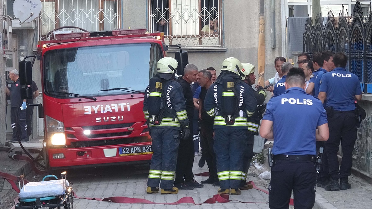 Olay, saat 18.40 sıralarında merkez Meram ilçesi Sahibiata Mahallesi Değirmen Sokaktaki bir apartmanın ikinci katında meydana geldi. Eşinden ayrı yaşayan Abdullah G., bir süre önce devlet koruması altına alınan 8 yaşındaki çocuğunun geri verilmemesine tepki gösterdi. Boğazına bıçak dayayan Abdullah G., evini de ateşe verdi. İhbar üzerine adrese polis, itfaiye ve sağlık ekibi sevk edildi. Eve gelen polise kapıyı açmayan Abdullah G., kendisini öldüreceğini söyledi. Patlama sesinin de duyulduğu evdeki yangın, itfaiye ekiplerinin, pencereden yaptığı müdahaleyle söndürüldü.