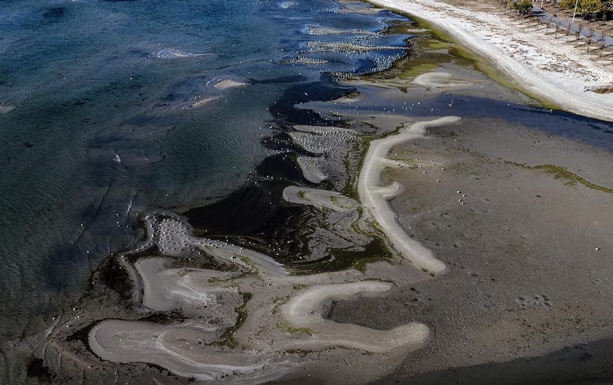 İstanbul Küçükçekmece'de bulunan Menekşe Sahili'nin suyu çekildi. Suyu çekilen sahilin son durumu içler acısı...
