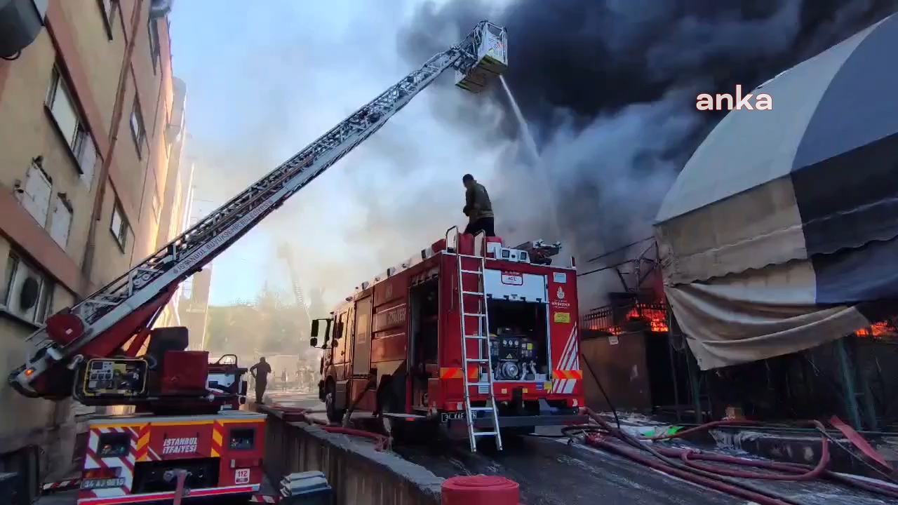 Gaziosmanpaşa Karayolları Mahallesi'nde halı sahada çıkan yangın kumaş deposuna sıçradı.
