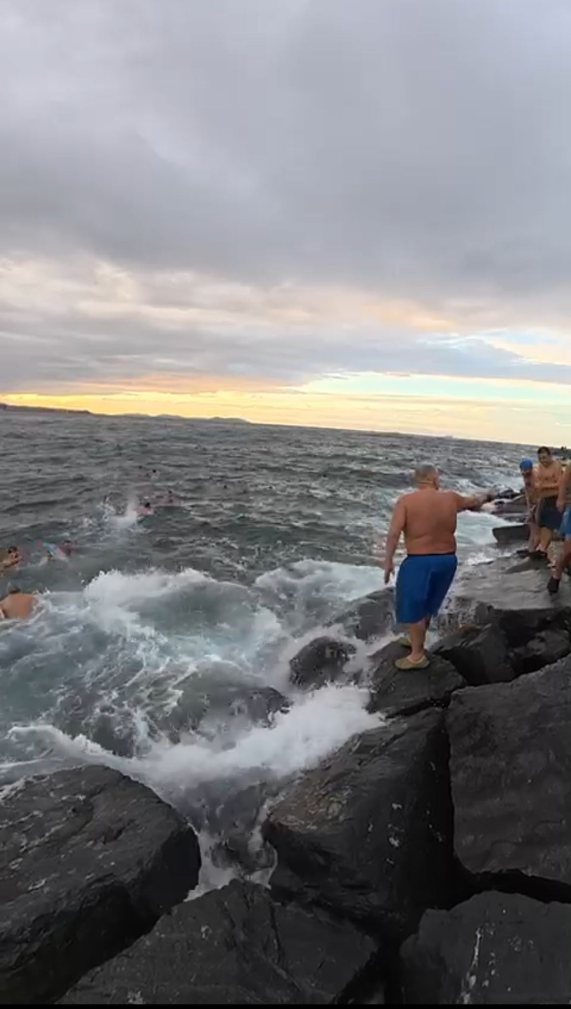 İstanbul’da sabahın erken saatlerinden itibaren etkisini gösteren lodos, sahil kesimlerinde yüksek dalgaların oluşmasına neden oldu. Kuvvetli rüzgara rağmen, kendilerine “Sarayburnu Balinaları” adını veren yaklaşık 20 kişilik bir grup, Fatih ilçesindeki Sarayburnu’nda denize girdi.