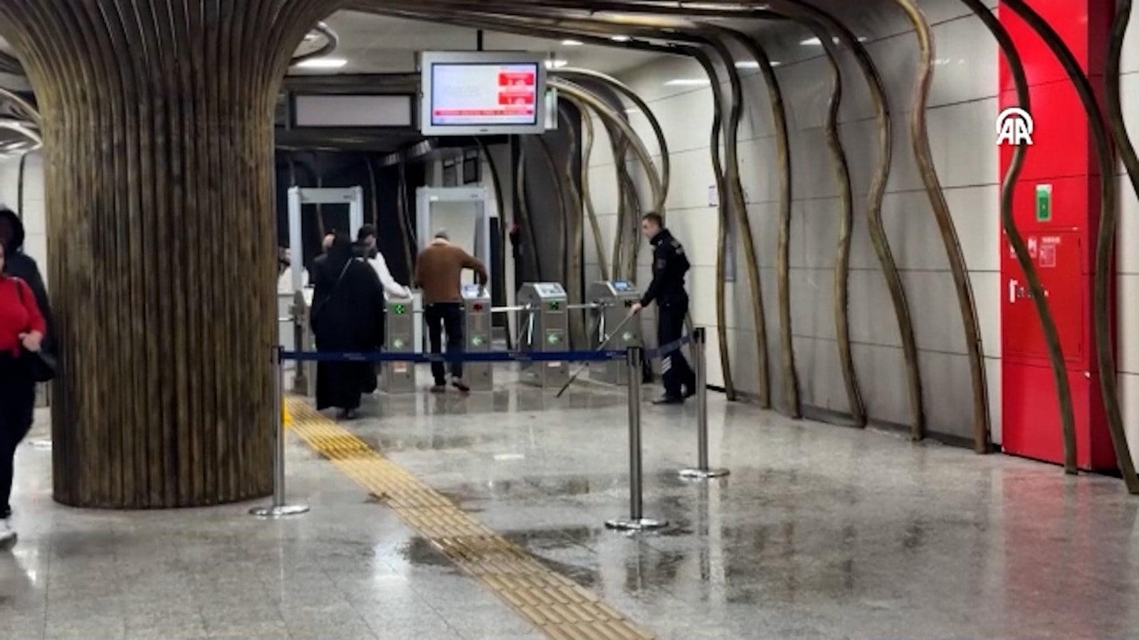 Biriken su, güvenlik görevlisi tarafından çekçekle temizlendi. Metro İstanbul ekiplerinin istasyonda inceleme başlatacağı öğrenildi.