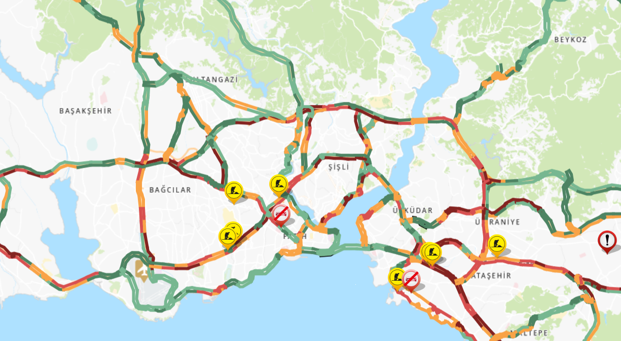 Özellikle TEM Otoyolu, D-100 Karayolu, 15 Temmuz Şehitler Köprüsü geçişi ve Avrasya Tüneli bağlantı yollarında araç trafiği durma noktasına geldi. Avrupa Yakası’ndan Anadolu Yakası’na geçişte yoğunluk artarken, iş merkezlerine yakın bölgelerde de araç yoğunluğu gözlendi.