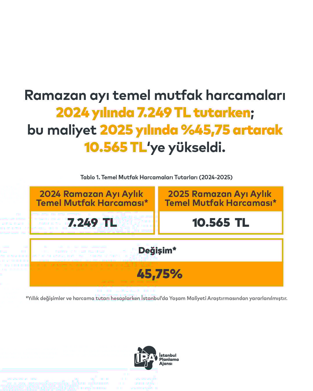 İstanbul’da Ramazan sofraları bu yıl daha pahalıya kurulacak. İstanbul Planlama Ajansı (İPA), 2025 Ramazan ayı temel mutfak harcama raporunu açıkladı.