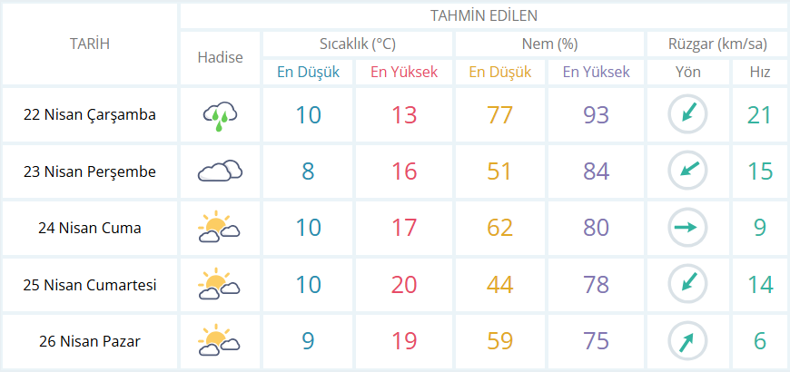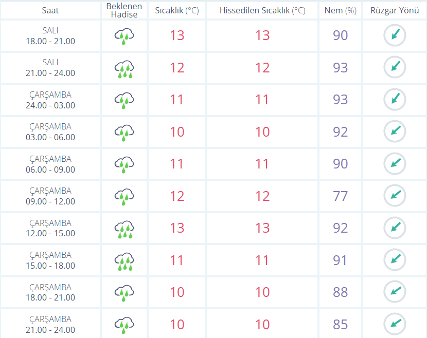 Yağışlı havanın öğle saatlerinden itibaren etkisini yitirmesi beklenen kentte hava sıcaklıklarının ise 10 ila 13 derece arasında seyredeceği tahmin ediliyor.
