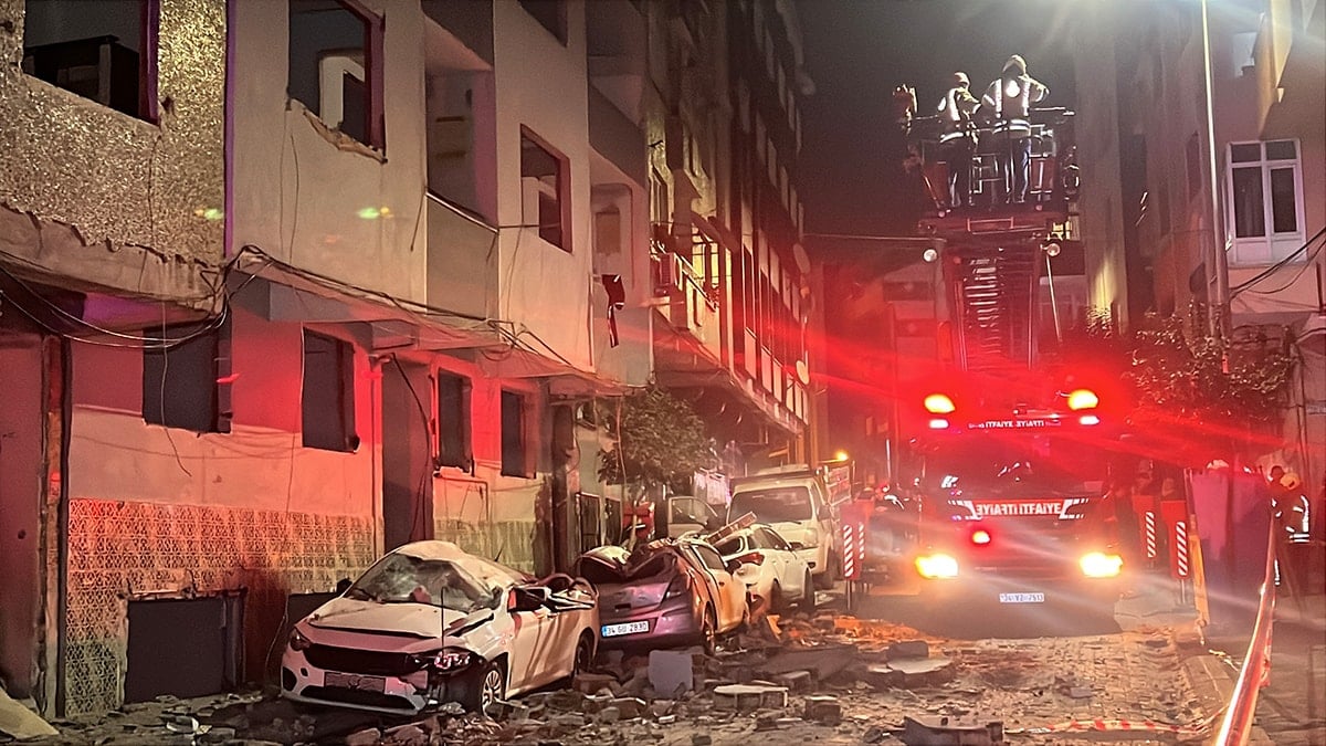 İstanbul'un Zeytinburnu ilçesinde kentsel dönüşüm nedeniyle boşaltılan 4 katlı binanın çatısından kopan parçalar sokak üzerinde park halindeki araçların üzerine düştü.