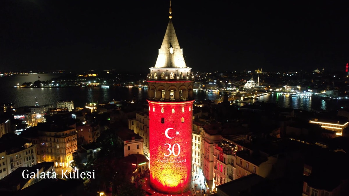 Cumhurbaşkanlığı İletişim Başkanlığı tarafından İstanbul'da Galata Kulesi, Beşiktaş Deniz Müzesi ve Dolmabahçe yemin kapısına ışık boyama tekniğiyle Türk bayrağı ve 30 Ağustos Zafer Bayramı logosu yansıtıldı.