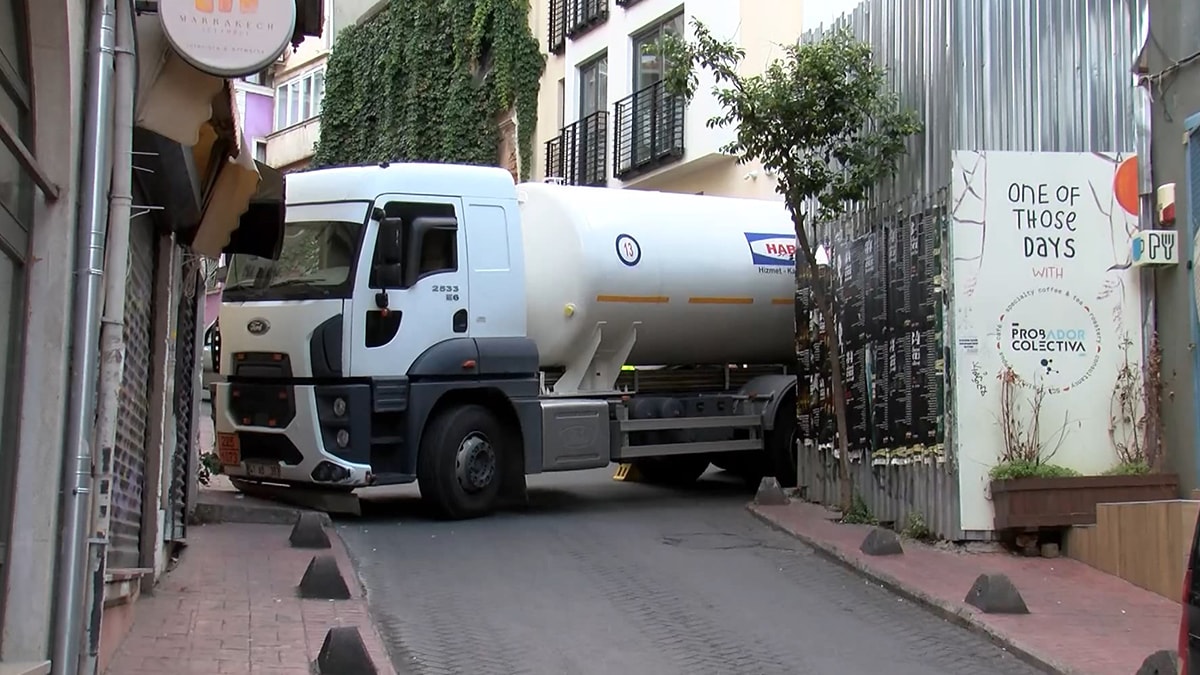 İstanbul'da Beyoğlu'nda dar sokakta virajı alamayan TIR yolu kapattı. Yaklaşık üç saat süren çalışmaların ardından TIR, vinç ile çekilince yol yeniden trafiğe açıldı.