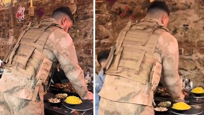 İstanbul'da bir restoranda askeri üniforma giydirilen garsonla servis yapıldı ve o anlara ait görüntüler sosyal medyada paylaşıldı.