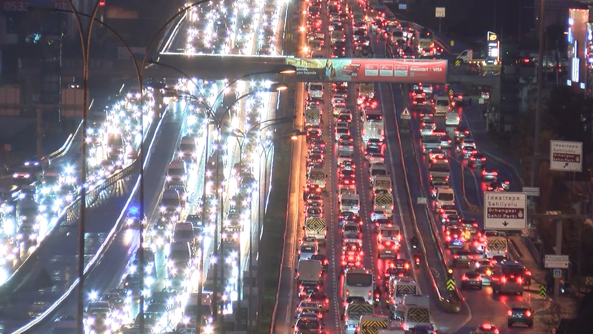 İstanbul'da yağışlı havanın da etkisiyle akşam saatlerinde trafik yoğunluğu oluştu. İstanbul Büyükşehir Belediyesi Trafik Yoğunluğu Haritası verilerine göre saat 18.30 itibarıyla yoğunluk yüzde 89'a ulaştı. Kentteki ana arterlerde trafik durma noktasına geldi. Maltepe D-100 Karayolu'nda araçların güçlükle ilerlediği görüldü.