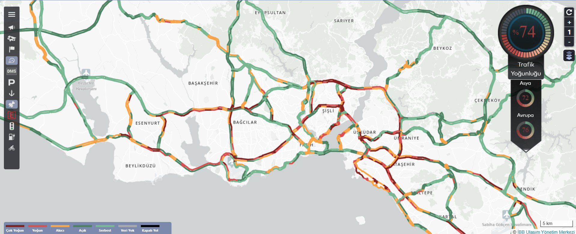 Avrupa Yakası'nda yoğunluk yüzde 76'ya çıkarken, Anadolu Yakası'nda yüzde 72 seviyesinde ölçüldü.