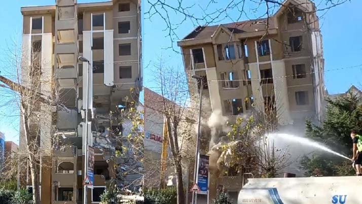 Yıkıma tepki gösterenler cep telefonuyla kayıttayken çökme meydana geldi. Bina caddeye doğru çöktü.