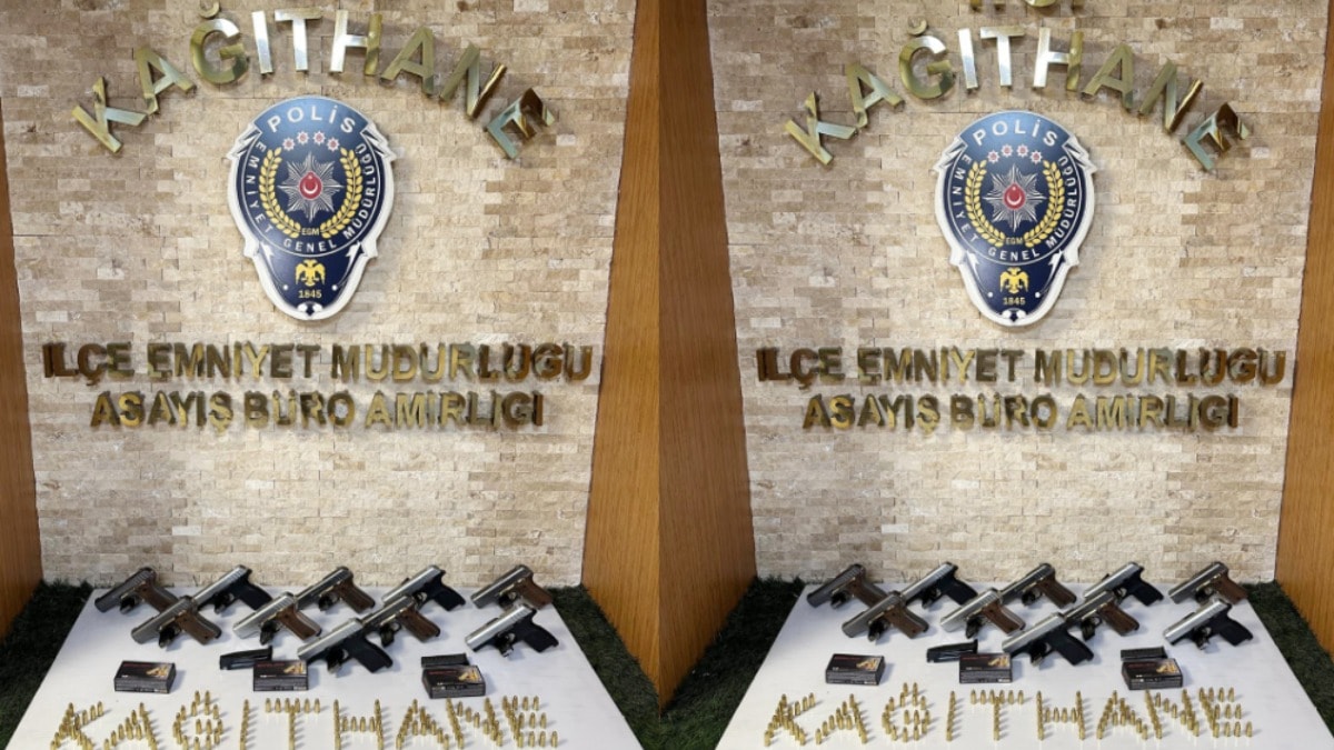 Emniyet Müdürlüğü ekiplerince 18 Ekim'de Kağıthane Merkez Mahallesi'nde bir iş yerine düzenlenen operasyonda, 10 ruhsatsız tabanca ve çok sayıda fişek bulundu.