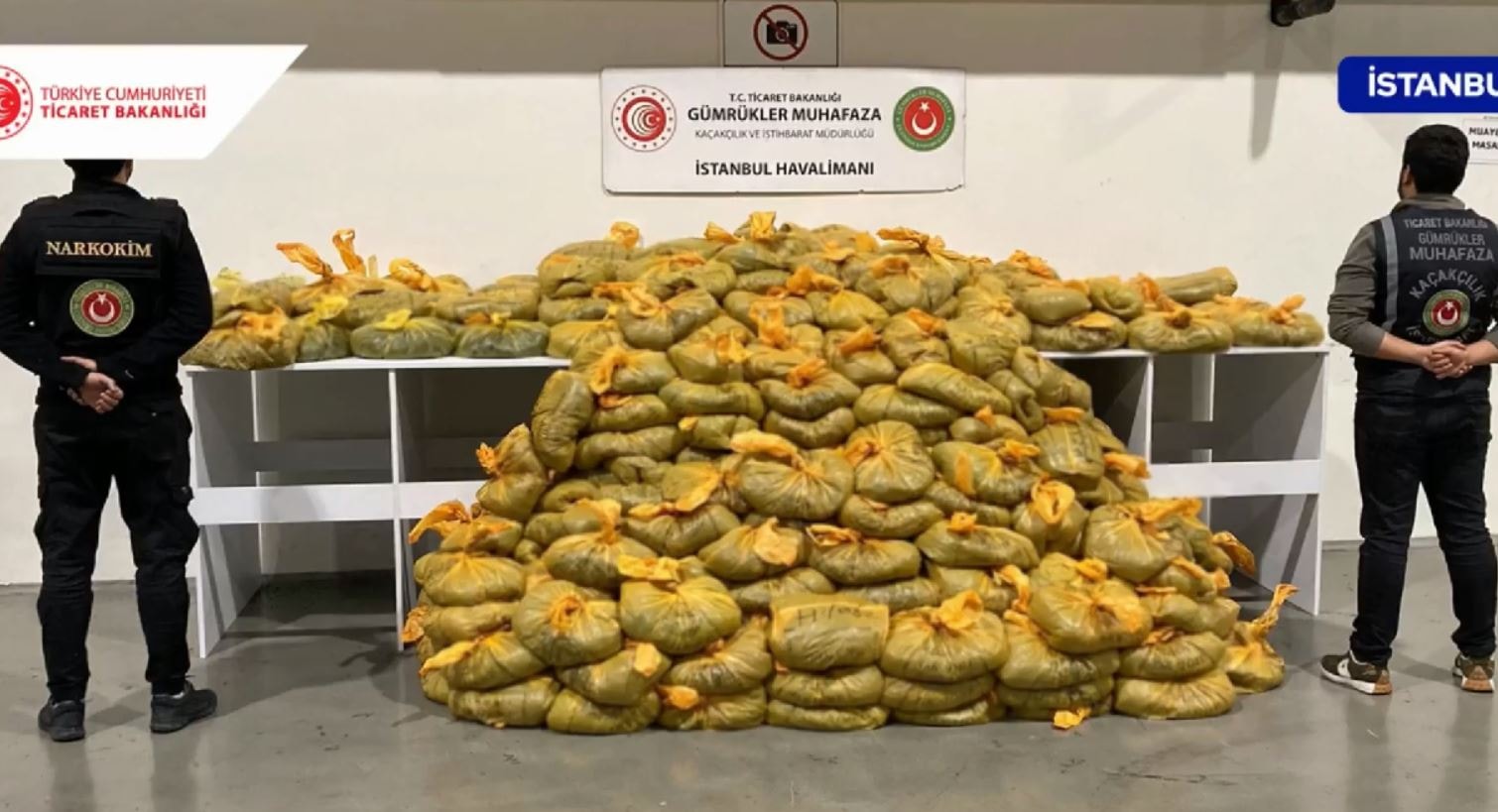 Ticaret Bakanlığı'nın sosyal medya hesabından yapılan açıklamada, "Gümrük Muhafaza ekiplerimiz, İstanbul Havalimanı'nda gerçekleştirdiği başarılı operasyon sonucunda 568 kilogram uyuşturucu madde yakaladı.