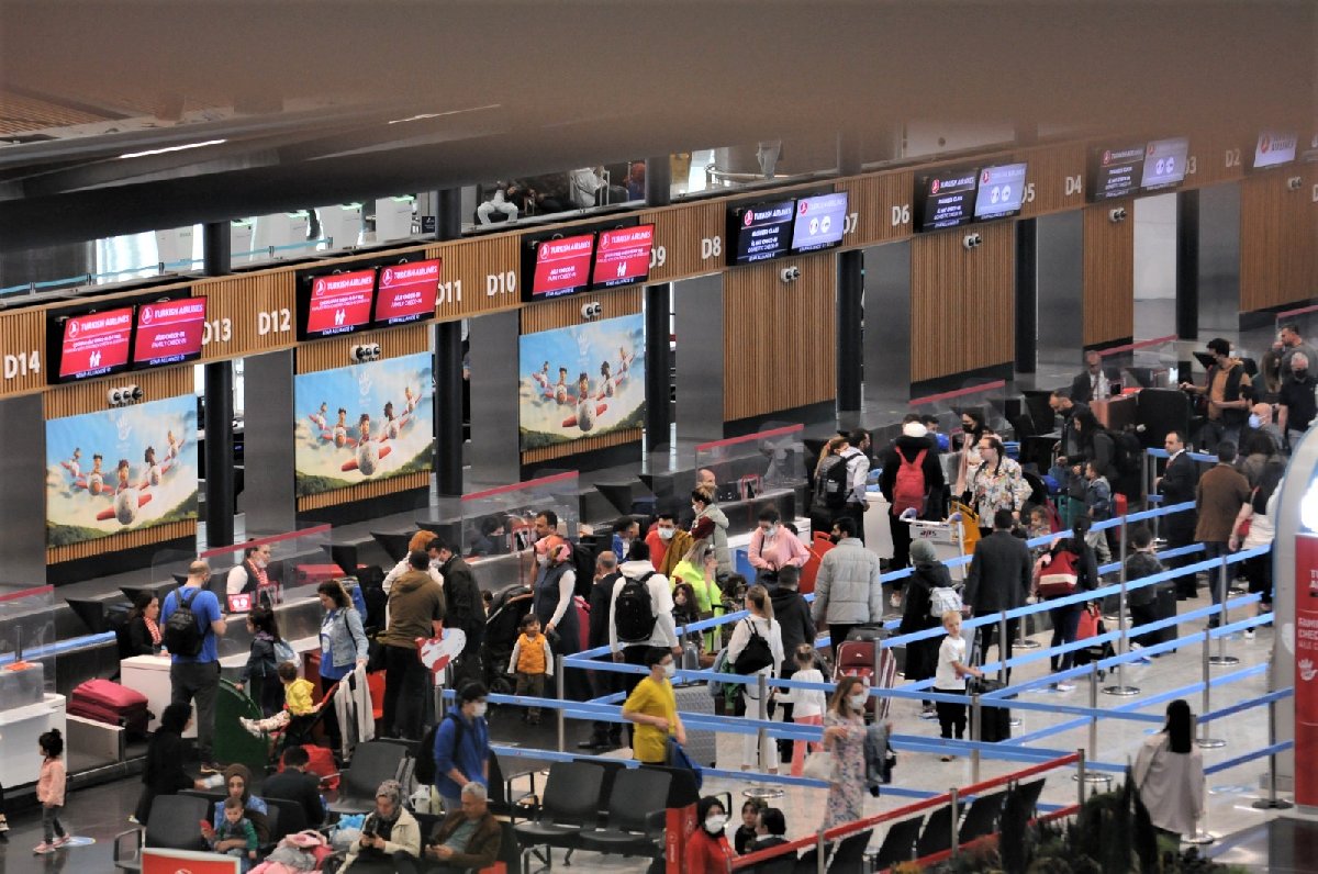 Bayram tatili için hava yolu ile seyahat edecekler, sabah erken saatlerden itibaren havalimanlarına akın etti. Koronavirüs pandemi süreci sonrasında seyahat yasaklarının kalkmasıyla birlikte İstanbul Havalimanı'nda da en yoğun günlerden biri yaşanıyor.