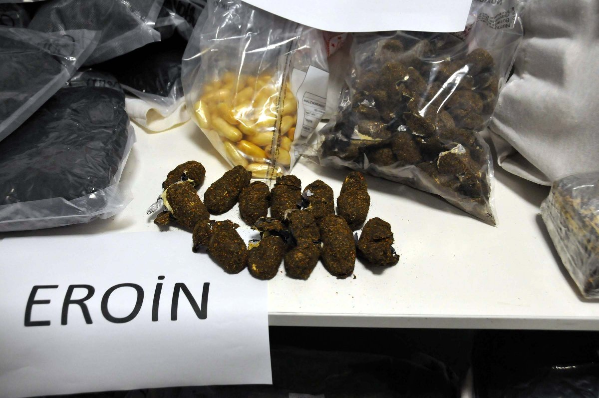 Toplam 67 kapsül içerisine gizlenmiş 2,2 kilogram ağırlığında ve yaklaşık bir milyon lira değerinde eroin ele geçirildi.