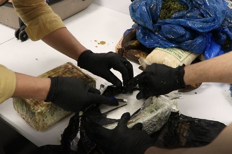 Şahsın beraberinde bulunan çantalar ile uçak altına verilen bagajlarının narkotik dedektör köpekleri ile kontrolü esnasında, köpeklerin valizlere tepki vermesi üzerine, valizler x-ray taramasından geçirildi ve şüpheli yoğunluk tespit edildi.