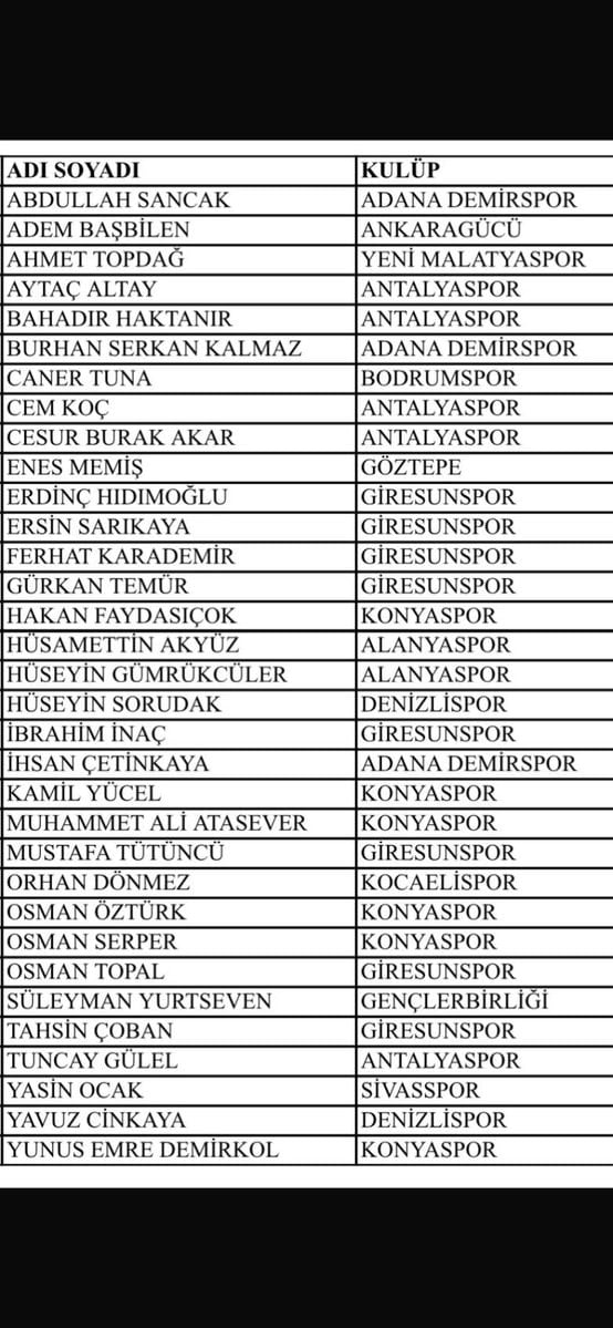 -Abdullah Sancak, Adem Başbilen, Ahmet Topdağ, Aytaç Altay, Bahadır Haktanır, Burhan Serkan Kalmaz, Caner Tuna, Cem Koç, Cesur Burak Akar, Enes Memiş, Erdinç Hıdımoğlu, Ersin Sarıkaya, Ferhat Karademir, Gürkan Temür, Hakan Faydasıçok, Hüsamettin Akyüz, Hüseyin Gümrükcüler, Hüseyin Sorudak, İbrahim İnaç, İhsan Çetinkaya, Kamil Yücel, Muhammet Ali Atasever, Mustafa Tütüncü, Orhan Dönmez, Osman Öztürk, Osman Serper, Osman Topal, Süleyman Yurtseven, Tahsin Çoban, Tuncay Gülel, Yasin Ocak, Yavuz Cinkaya ve Yunus Emre Demirkol