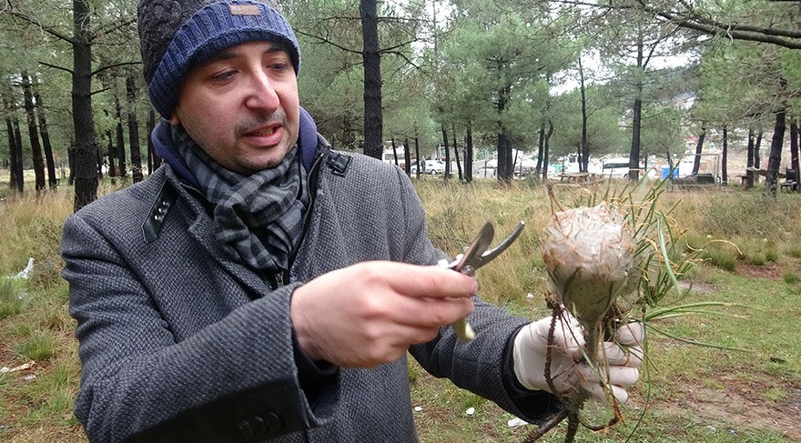 Çam kese böcekleri ile ilgili çalışmalar yürüten Dr. Ahmet Katı, “Çam kese böceğiyle biyolojik mücadele amacıyla ormanlarda çam kese böceği toplamaya çıktık. Burada belli bölgelerde çam kese böceklerine rastladık. Bu böcek oldukça saldırgan ve salgınlara sebebiyet veren böcek. Kızılçam ormanlarının en büyük düşmanlarından. Karadeniz ve Akdeniz’de salgınlar söz konusu olmuştu. İstanbul’un birkaç noktasında da biz tespit etmiş olduk.