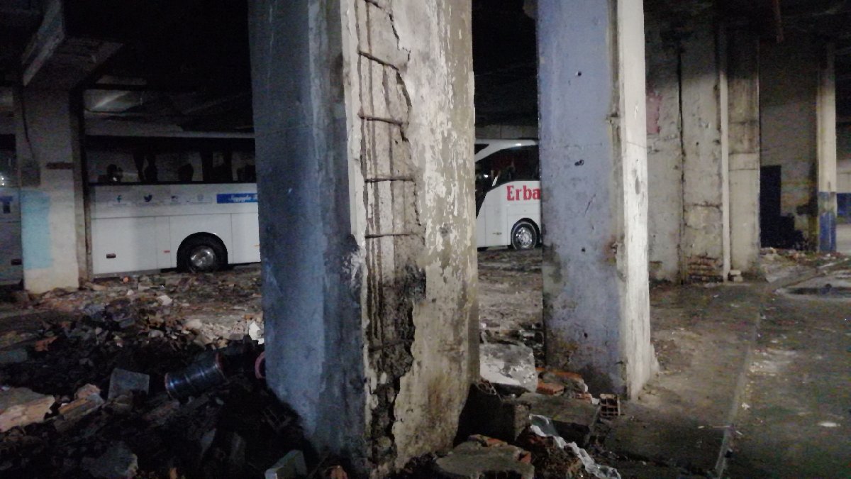 Esenler'de bulunan otogardaki birçok kolon ve kirişin sıvalarının döküldüğü, içerisinde bulunan demirlerin açığa çıktığı, bazılarının zamanla korozyona uğrayarak paslandığı görüldü.