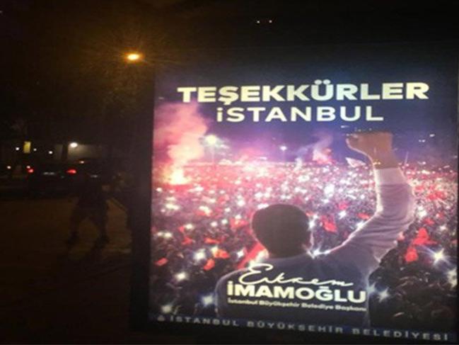 Ekrem İmamoğlu mazbatasını alıp görevi devralmasıyla birlikte "Teşekkürler İstanbul" yazılı afişler İstanbul genelinde bilboardları süslemeye başladı.