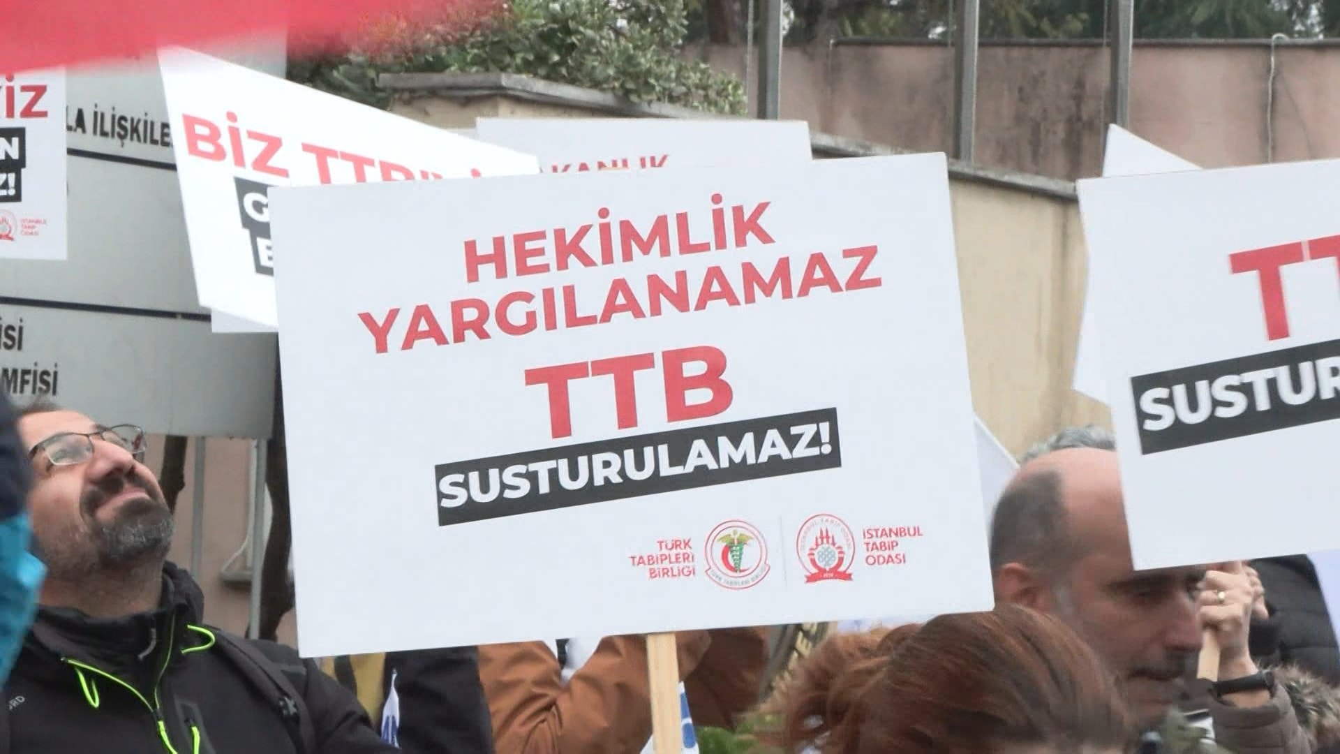 İstanbul Tabip Odası öncülüğünde toplanan bazı sağlık çalışanları, Türk Tabipler Birliği Merkez Konseyi Başkanı Şebnem Korur Fincancı ile merkez konseyi üyelerinin görevden alınmasını protesto etti.