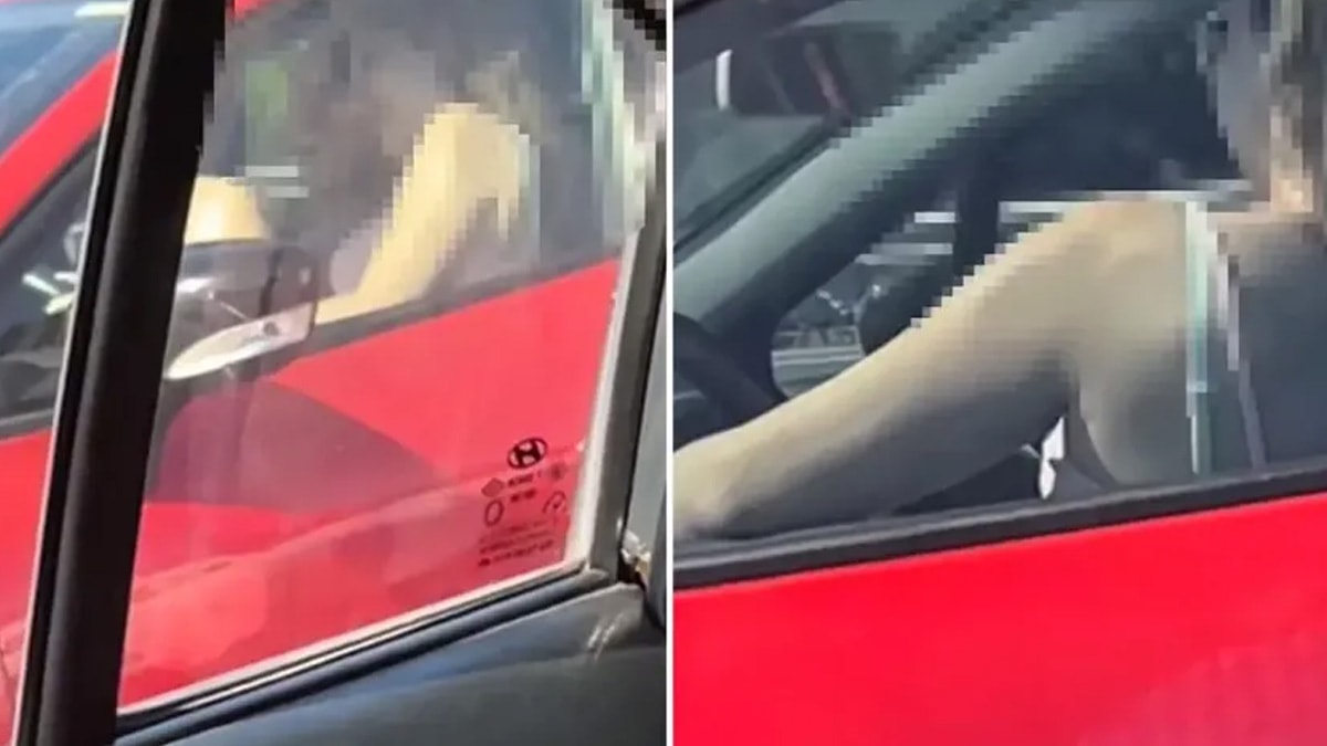Trafikte seyreden bir sürücünün kucağındaki kadınla araç sürdüğü görüldü.
