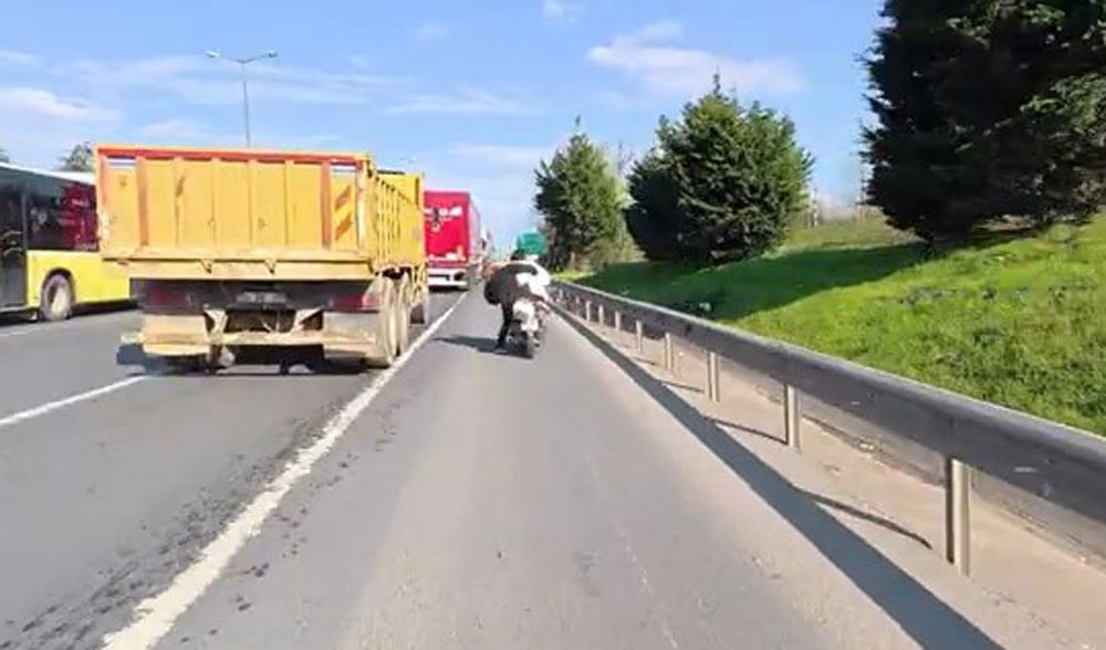 Kavga sırasında darbe alan kadın, motosiklet üzerinde dengesini kaybederek düşme tehlikesi geçirdi. Son anda kendini toparlayan kadın, olası bir kazadan kıl payı kurtuldu. O anlar, aynı yönde ilerleyen başka bir motosikletlinin kask kamerası tarafından kaydedildi.