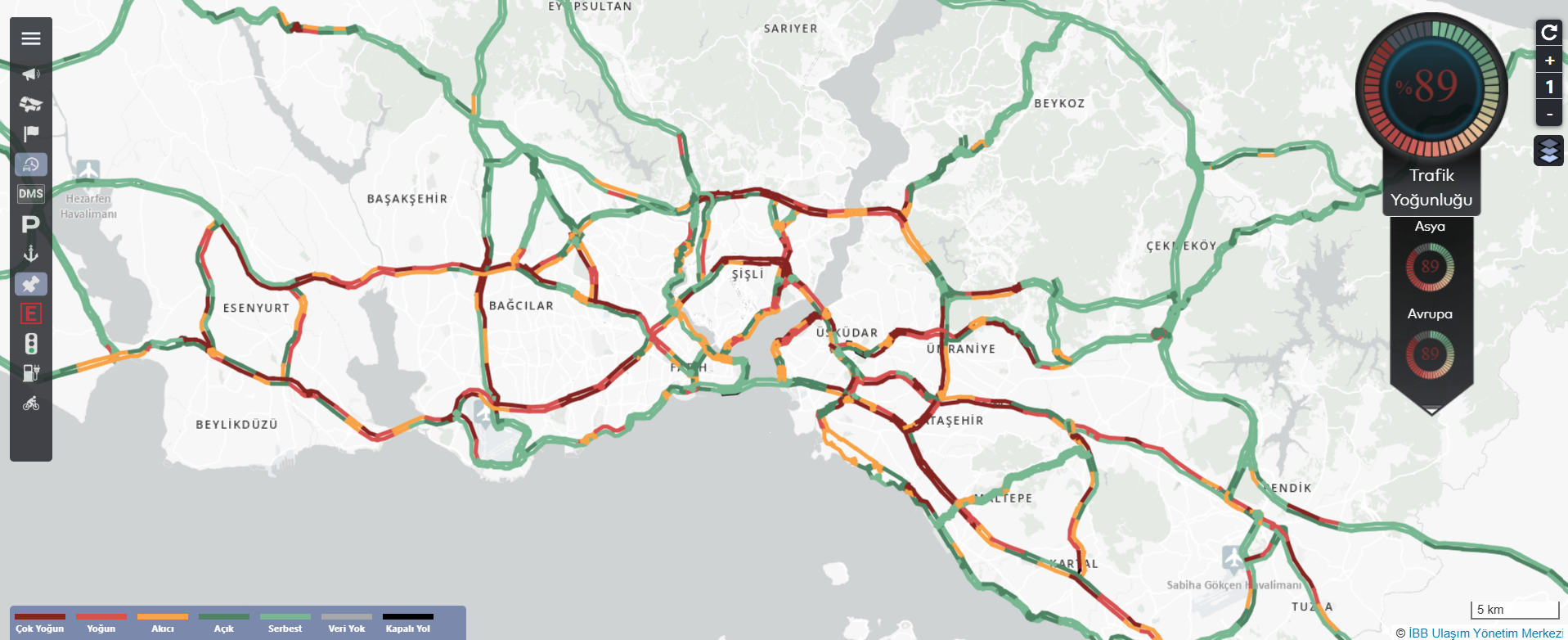 Trafik, Avrupa Yakası'nda yüzde 89, Anadolu Yakası'nda ise yüzde 87 olarak ölçüldü.