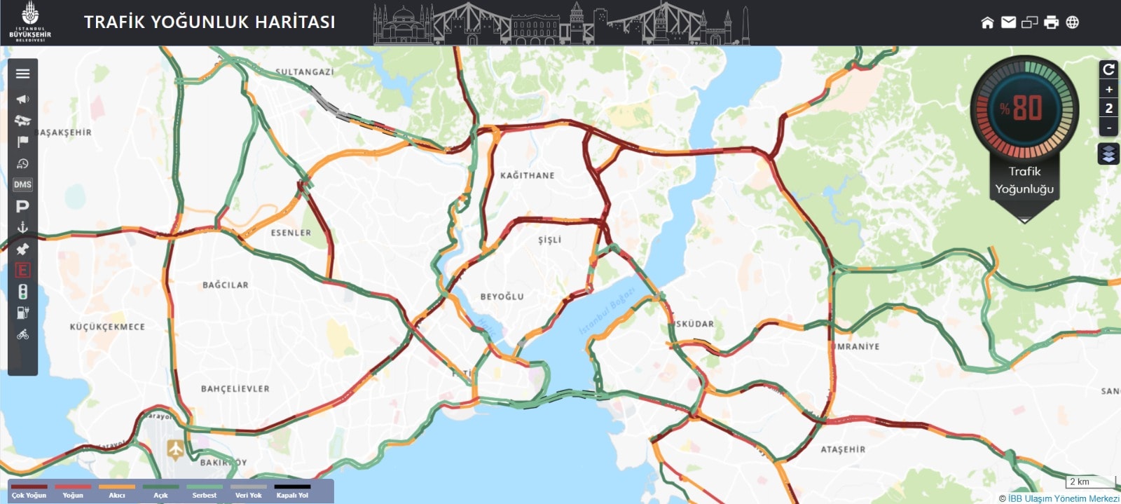 Trafik saat 16:31 itibariyle Avrupa Yakası'nda yüzde 90, Anadolu Yakası'nda ise yüzde 74 olarak ölçüldü.