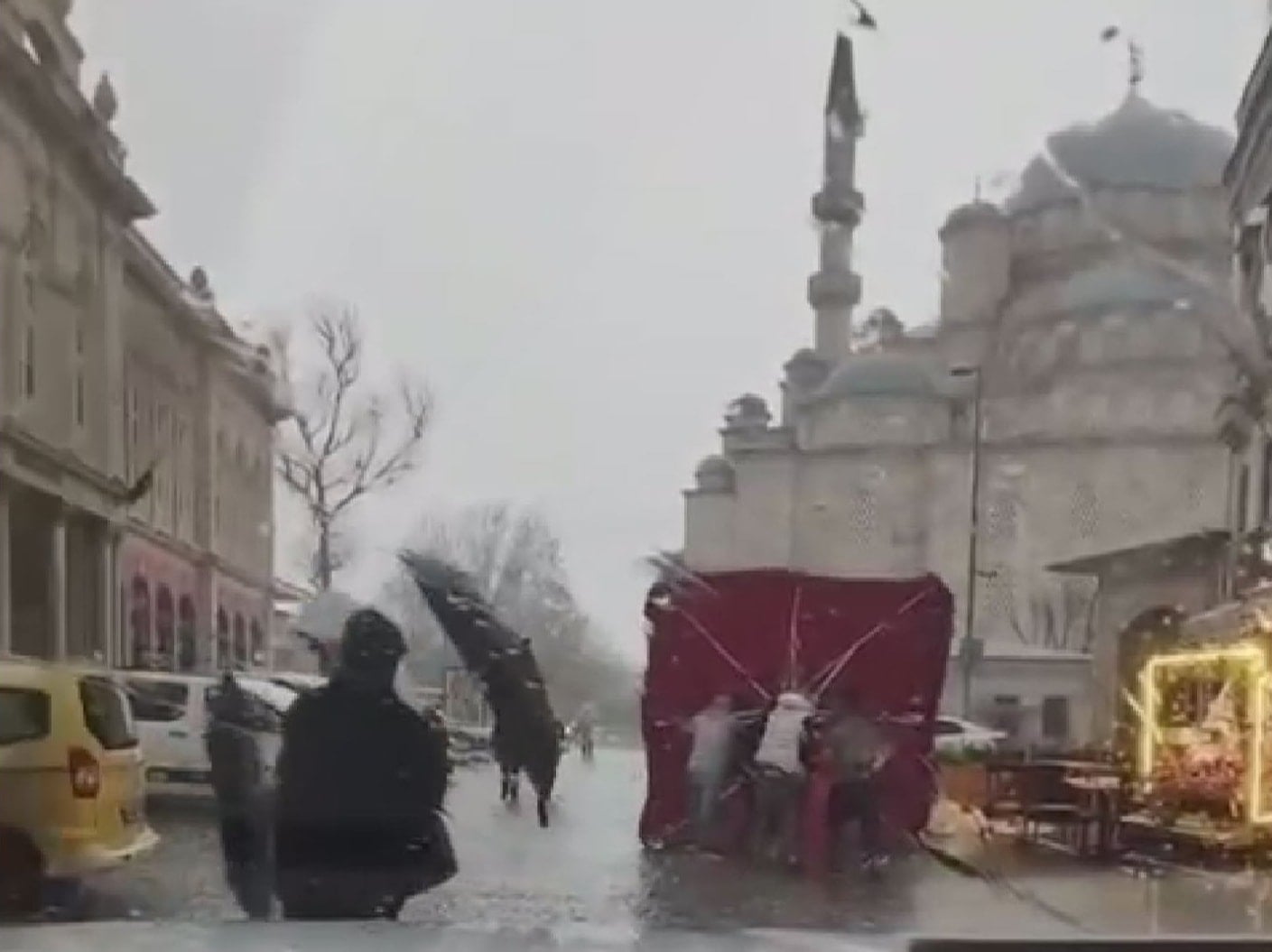 Çapa'da ise vatandaşlar yolda yürürken zorlandı. Bazı dükkanların önündeki şemsiyeler devrildi.