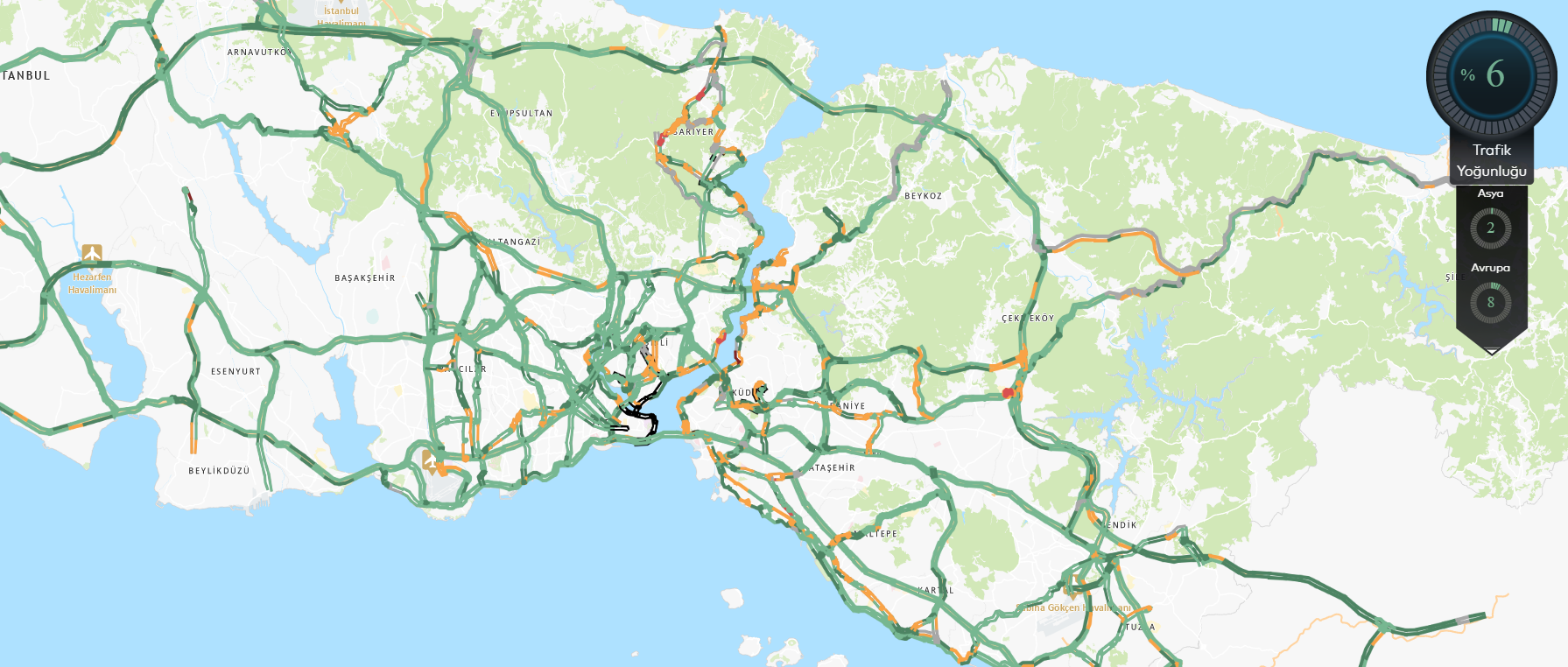 İBB Trafik Yoğunluk Haritası'nda yer alan verilere göre; kent genelinde trafik yüzde 6 oldu.