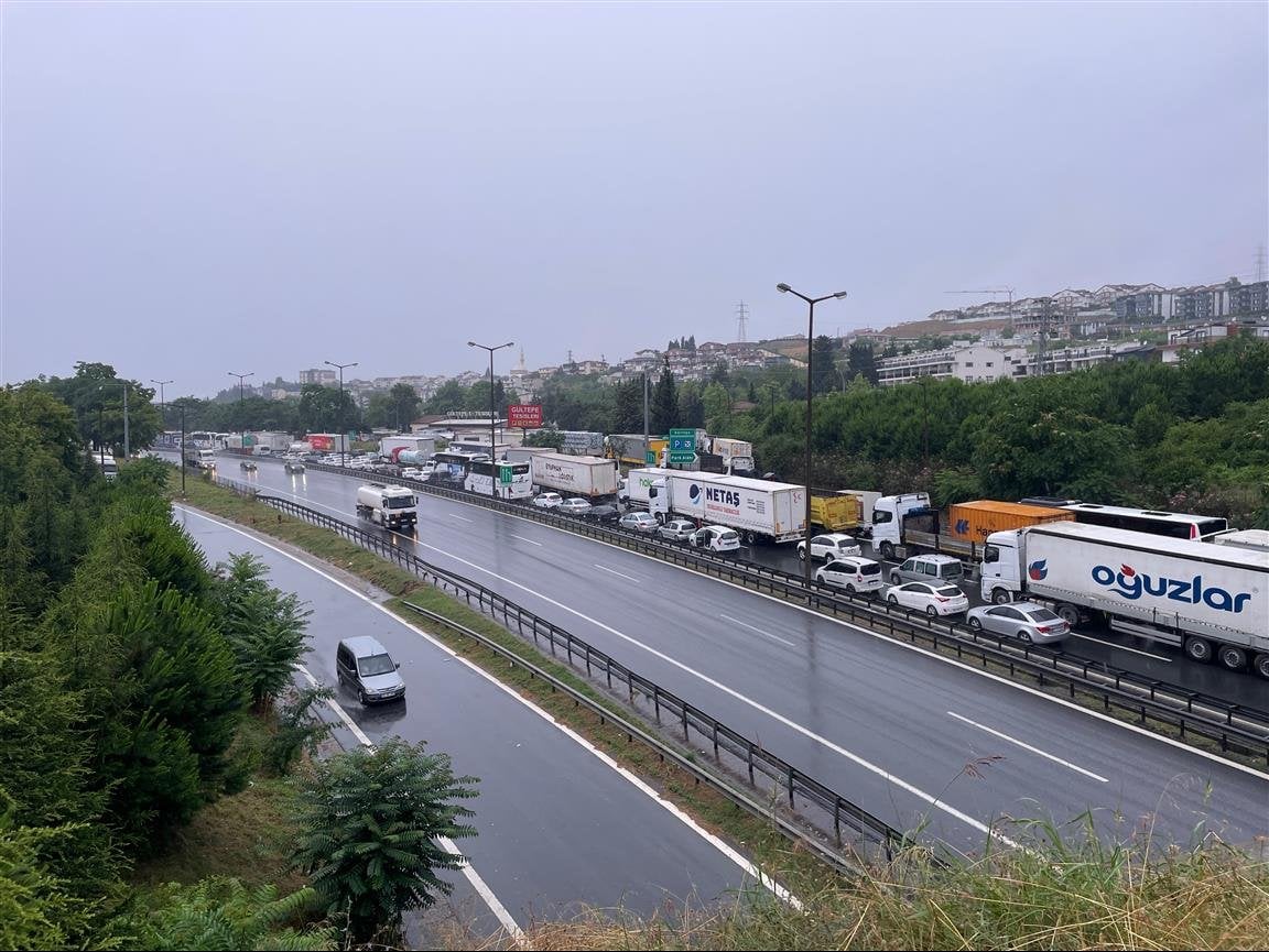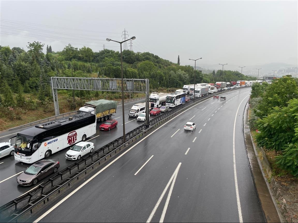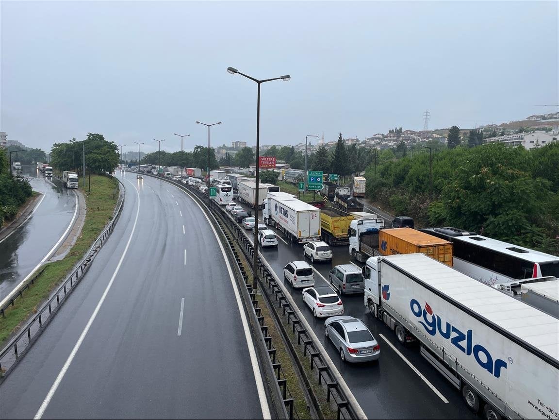 Yolun ulaşıma kapanması nedeniyle İstanbul yönünde 8 kilometreye varan araç kuyruğu oluştu.