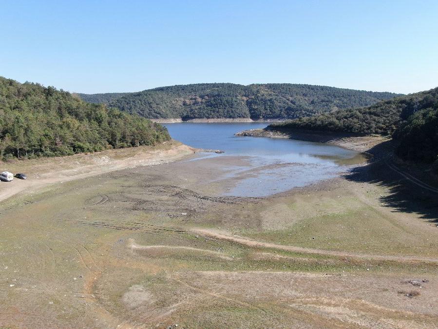 Alibeyköy Barajı, doluluk oranlarında en çok düşüş yaşanan barajlardan oldu. Geçtiğimiz aylarda baraj suları ile kaplı olan alanların bugünlerde kuraklık nedeniyle bataklık haline dönmesi, drone ile havadan görüntülendi.