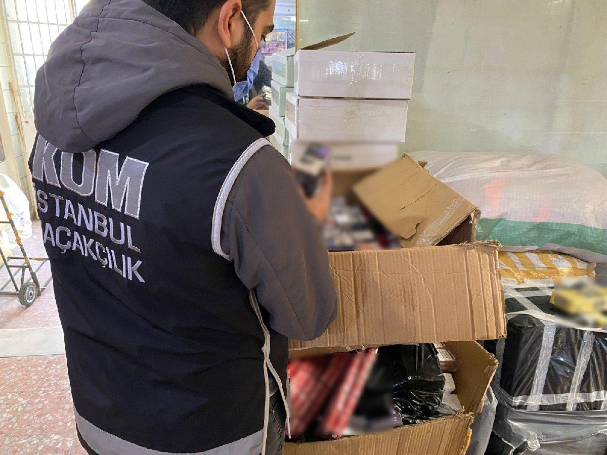 İstanbul'da düzenlenen operasyonlarda kaçak yollarla yurda getirilen 19 bin 174 paket sigara, 12 bin 310 puro, 1 ton nargile tütünü, 998 elektronik sigara ile 8 bin 832 şarj aleti ve 2 bin 840 cep telefonu bataryası ele geçirildi. Operasyonlarda 9 şüpheli gözaltına alındı.