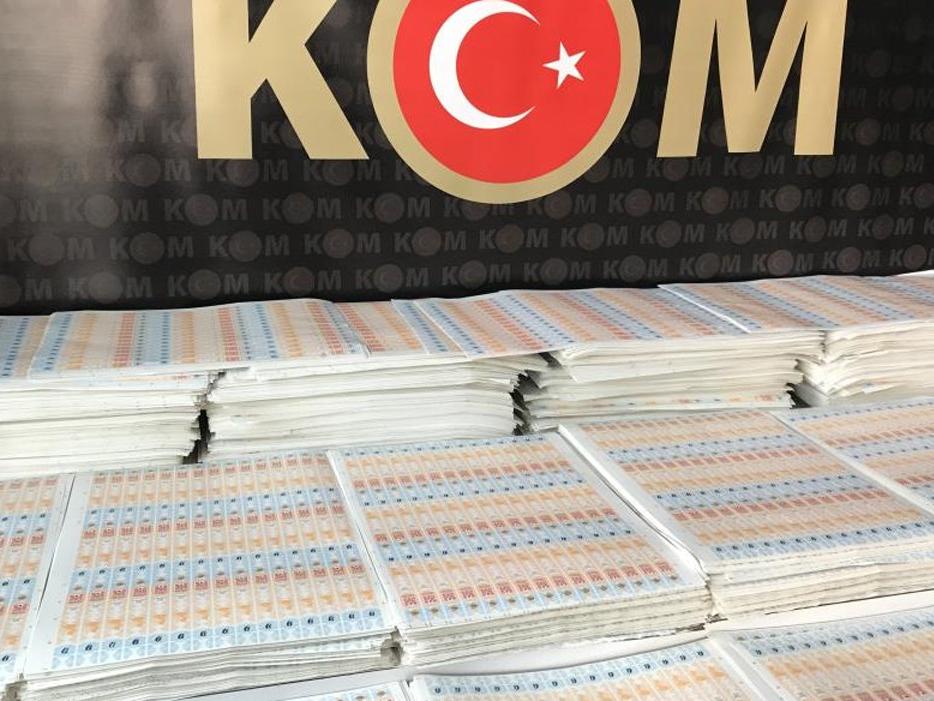 Adreste yapılan aramada, 8 bin 600 adet tabakadan oluşan 387 bin alkollü içecek bandrolü ele geçirildi. Üzerlerinde “karekod” işaretleri de bulunan bandrollerin piyasa değerinin 28 milyon lira olduğu belirtildi. Aramalarda bandrollerin yapıldığı metal kalıp levhalar, basıma hazır 8 pasaport ve farklı belgeler de ele geçirildi.