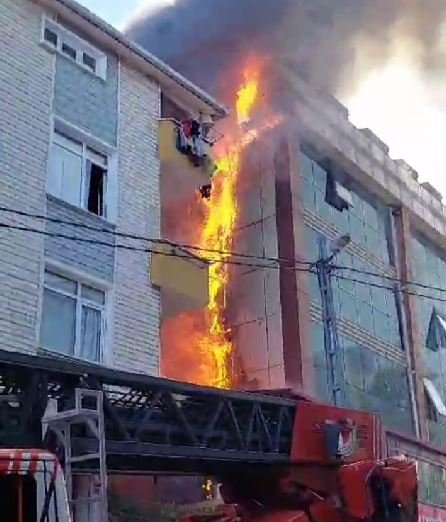 Ataşehir'in Kayışdağı Mahallesi'nde 5 katlı binada yangın çıktı. Olay yerine çok sayıda itfaiye ekibi sevk edildi. Yangının etrafa sıçrayarak zarar verdiği gözlendi. İtfaiye ekiplerinin yangına müdahalesinin ardından alevler kontrol altına alındı. (DHA)