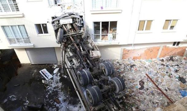Gürsel Mahallesi Esenlik Sokağı'ndaki inşaata beton taşıyan Ramazan Bulut idaresindeki beton mikseri, yokuş çıkarken freninin boşalması sonucu geriye kaymaya başladı. Beton mikseri, yol kenarındaki demir korkuluklara çarptıktan sonra yaklaşık 20 metre yükseklikten Denizmen Sokağı'ndaki Yakışıklı Apartmanı'nın arka bahçesine düştü. Sürücü, düşmeden önce araçtan atlamayı başardı.