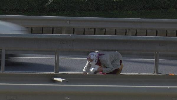 Emniyete şeridinde de yürümek zorunda kalanlar daha sonra yolun karşısına geçmek için bariyerden atlayarak hem kendi hayatlarını hem de sürücüleri tehlikeye atıyor.